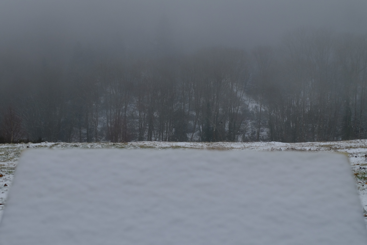 J'arrive ce matin là le premier sur le parking du musée, la neige est immaculée, sans trace de passage. L'air est frais, le ciel calme, et la forêt qui couvre cette généreuse colline promet d'être belle. J'ai mon sac à dos, de quoi manger le midi pour me réchauffer, et bien sur mon appareil en guise de témoin.