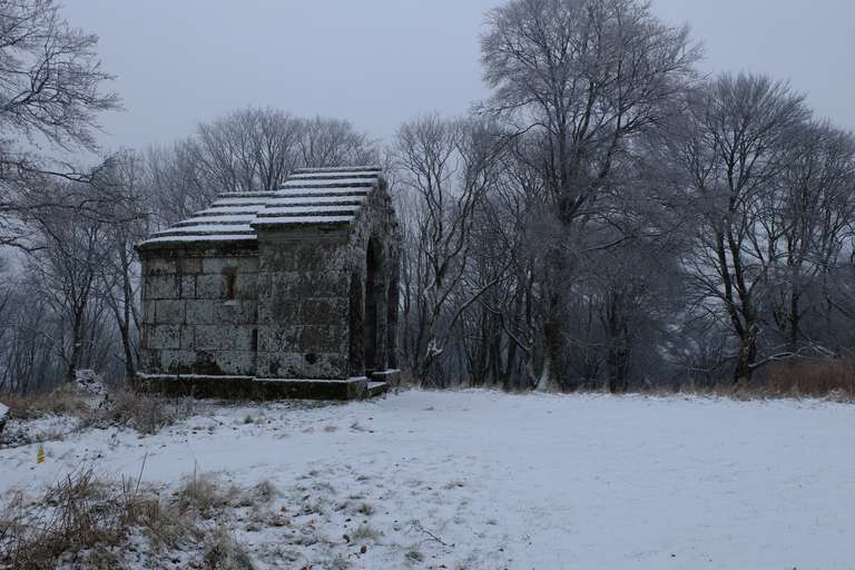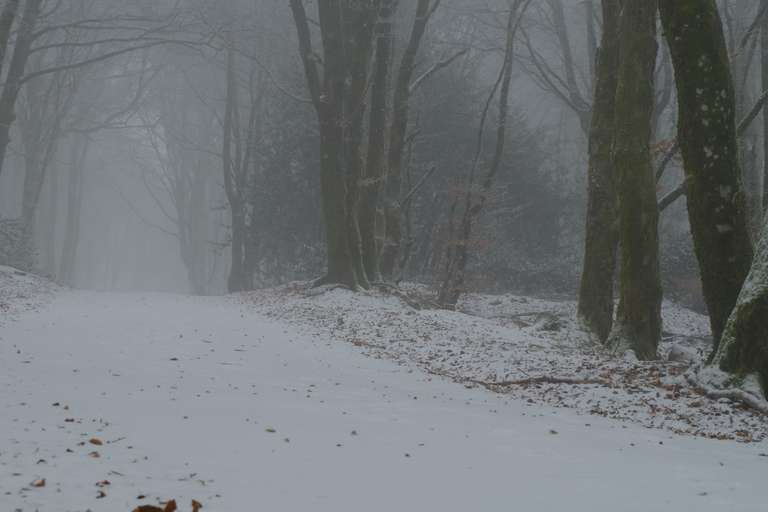 Mais arrivé au milieu de l'ascension, après avoir passé les ruines de l'ancien temple où il régnait une ambiance singulière - d'un calme presque pesant - l'atmosphère commence à changer. Le ciel soudain semble plus bas et un vent d'un froid mordant s'immisce entre les arbres qui semblent étrangement changer de posture.