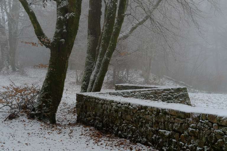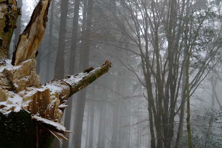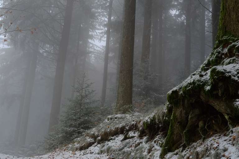 Épilogue : dans la descente jusqu'au parking, je croisai des familles en sens inverse, emmitouflées dans des anoraks et chaussées de bottes de neige, les enfants tirant des luges en riant. Tout était à nouveau si réel ! Je me demandai alors si ce que je venais de vivre était le fruit de mon imagination, d'une légère hypothermie ou de la faim ? Et cette étrange tempête de brume et de neige n'avait-elle été qu'une bizarrerie climatique ? J'allais peut être trouver la réponse en triant les précieuses photos de mon appareil, peut-être découvrir une preuve cachée dans la trame de pixels de mes clichés...